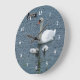White Swan Cygnets Water Foto Große Wanduhr