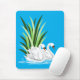 White Mute swans gliding on water with a deep blue background on mousepads