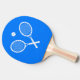 Weiße Tennisschläger. Aktives Lebensmotiv. Tennisausrüstung auf blauem Hintergrund. Für Tennisliebhaber.
