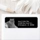 Hübsche Fotoadressen-Etiketten für Sie bereit, um mit Ihren eigenen Informationen maßgeschneidert. Wunderschönes Foto von weißem Tiger, auf der links Seite und einem schwarzen Hintergrund mit weißem Text. Ideal für Ihre tägliche Korrespondenz. Passen Sie an, ob Sie zum Ändern der Textfarbe oder des Schriftartes gewollt haben.