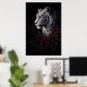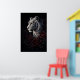 This artwork captures the quiet authority of a white tiger, surrounded by deep red roses against a dark, moody background.