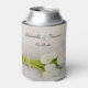 Personalisieren Sie die elegante White Tulip Bouquet Wedding Can Cooler, um eines der Gastgeschenke für Ihren März, April oder Mai Frühjahr Garten Party Brautparty oder Heirat Empfang zu schaffen. Dieses elegante botanische Brautgetränk in Dosen cooler zeigt ein Blumenfoto mit einem Blumenstrauß aus weißen Tulpenblüten, Perlenhalskette und Brautschleier mit weißem Satin-Hintergrund.