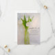 Die hübsche Weiße Tulips in Milk Bottle Spring Wedding Ankündigung Datum freihalten Sets einen eleganten Ton für Ihren März, April oder Mai Frühling inspirieren Ehe Zeremonie und Empfang. Dieses elegante, gepflegte Brautphänomen behalte die Datumsanzeige mit einem Blumenfoto aus weißen Tulpenblüten in einer Vintagen Glasmilchflasche und einem weißen Brautschleier mit weißem Satin-Hintergrund. Erhältlich als gedruckte Einladung zum Verschicken oder als digitaler Download für den einfachen digitalen Austausch online.