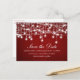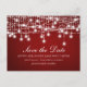 Weiße Tinkle-Saitenleuchten und Glühbirnen auf einem reichen, rubinroten Hintergrund. Personalisieren Sie den Text, die Textfarbe, den Textstil dieser Save the Date Karte. Kontaktieren Sie den Händler, wenn Sie Hilfe beim Anpassen des Textes benötigen.