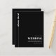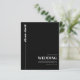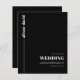 Diese schwarze BUDGET Hochzeitseinladung ist eine perfekte Mischung aus modernem und minimalistischem Design. Die weiße schicke Typografie verleiht dem Gesamtbild eine Touch Eleganz. Die großzügige Gestaltung und die saubere Ästhetik machen es optisch ansprechend. Auf schwarzem Hintergrund erzeugt eine weiße vertikale Linie auf der links Seite ein interessantes visuelles Element. Die Namen des Ehepaares sind clever eingearbeitet, erweitern sich nach oben und fügen eine personalisierte Touch hinzu. Mit minimalem Text konzentriert sich die Einladung auf das fett-weiße Wort "WEDDING" und wesentliche Details, sodass es einfach zu lesen und zu verstehen. Um die UAWG bequem zu machen, enthält die Rückseite der Einladung einen QR-Code für Online-Antworten.
