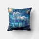 Wunderschönes White Unicorn, nachts am See unter Vollmond, umgeben von Blume KI Art von minx267