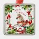 Was für ein hübsches weißes Rockpferd! Dies ist ein Vintages Aquarelldesign, das für den Yuletide so geeignet ist. Im Urlaub rot dekoriert, scheint durch eine rote und grüne Kranzgrenze zu springen. "Frohe Weihnachten" ist in dekorativer Art für die Saison, rocking' fort. Es ist ein schönes Ornament zum Anziehen Ihrer Geschenke und Pakete.
