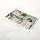 Schöne Hochzeitskarte mit einer Collage aus Foto, zu der Sie fünf Ihrer Hochzeitsfeier Fotos hinzufügen können. Vielen Dank, dass Sie in einem wunderschönen Kalligraphieskript in der unteren rechten Ecke geschrieben sind, mit Schleifen und in Goldfolie gedruckt. Fügen Sie Ihre Namen und Hochzeitstag und Ort in einem eleganten Schriftart hinzu. Der Rücken ist gesäumt, sodass man eine persönliche Nachricht von Hand schreiben kann.