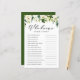 Wer kennt die Mutter am besten? Beantworten Sie diese Fragen, um es herauszufinden! | Fügen Sie diese lustige und spielerische Baby Duschspielkarte zu Ihrem Event hinzu. Diese benutzerdefinierbare Spielkarte "Who Know The Mama Best" zeigt Aquarellbilder von weißen Blume und Grünpflanzen. Personalisieren Sie diese, indem Sie Ihre Fragen hinzufügen. Diese weiße, blumengeschmückte Babydusche mit einer Spielkarte eignet sich ideal für den Winter- und Frühjahrsduschen und Partys.