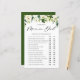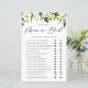 Rate mal, wer es gesagt hat! War es die Mutter oder der Vater? | Fügen Sie diese lustige und spielerische Baby-Dusche sagte "He Said She" Spielkarte zu Ihrer Veranstaltung hinzu. Diese benutzerdefinierbare Mama- oder Vater-Spielkarte bietet Aquarellbilder für weiße Blume und Grünpflanzen. Personalisieren Sie diese, indem Sie Ihre Fragen hinzufügen. Diese weiße, blumengeschmückte Babydusche mit Spielkarte eignet sich ideal für den Winter- und Frühlingsduschen.