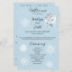 Ein kleiner weißer Drache sitzt zwischen weißen Rosen und einem weichen, hellblauen Hintergrund mit zarten Schneeflocken.