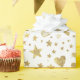 White backgrounds with gold sparkly hearts wrapping paper, suitable for bridal showers and weddings.