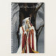 Ein Zauberer ganz in weiß, rot und gold hält ein Team mit beiden Händen mit einem sehr alten großen Eichenbaum hinter sich und einem Wald um sich herum. Hinter den Schultern des Zauberers steckt ein schwarzer Rabe.