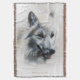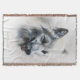Ein weißes Wolfportrait vor einem weißen Hintergrund