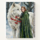 Feel the deep connection with the wild in this stunning fantasy portrait. The artwork features a red-haired Celtic druidess wrapped in a warm green cloak, embracing a giant white wolf in a snowy forest. She holds a branch of red rowan berries, a traditional symbol of protection and magic in Irish folklore. Painted in a rich impasto style, this design radiates warmth, loyalty, and the spirit of winter. A perfect gift for wolf lovers, nature enthusiasts, or fans of fantasy RPGs. Personalize with a name to create a unique gift.