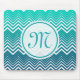 Eleganter, blauer grüner Farbverlauf und White Zigzag Zickzack. Benutzerdefiniertes Monogramm.