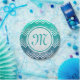 Eleganter, blauer grüner Farbverlauf und White Zigzag Zickzack. Benutzerdefiniertes Monogramm.