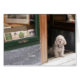nicht sicher, ob es sich wirklich um eine Poodle oder eine andere Rasse, aber es ist sehr niedlich - sitzen an der Tür eines antiken Buchhandlung in Wien, Österreich