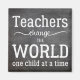 "Lehrer verändern die Welt ein Kind nach dem anderen" nachdenkliche Typografie zitiert in schwarzer Tafel Hintergrund und weiße Schrift. Es könnte ein nettes Dankeschön an deinen besten Lehrer sein.