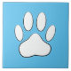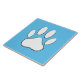 Weiße Version des Pfotendrucks auf himmelblauem Hintergrund. Dekoridee für Zuhause und Unternehmen.