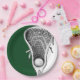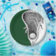 Coole Lacrosse Party- oder Teamevent-Teller mit laxen Stab- und Ballkunst auf grünem Hintergrund.