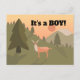 Dieses Design zeichnet sich durch einen niedlichen Hirschbuck in einer Berglandschaft aus. Der erste Text lautet: "Es ist ein Junge!"