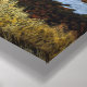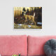 Eine weißgetünchte Dose ist von deiner Gegenwart erschreckt. Herbstlaube und eine leichte Verschneidung deuten darauf hin, dass es im Spätherbst im Wald ist. Realistisches Kunstwerk aus einem originalen Ölgemälde des Pferd- und Wildtierkünstlers Crista S. Forest.
