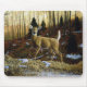 Eine weißgetünchte Dose ist von deiner Gegenwart erschreckt. Herbstlaube und eine leichte Verschneidung deuten darauf hin, dass es im Spätherbst im Wald ist. Realistisches Kunstwerk aus einem originalen Ölgemälde des Pferd- und Wildtierkünstlers Crista S. Forest.