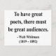 "Um große Dichter zu haben, muss es ein großes Publikum geben." - Walt Whitman