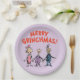 This heartwarming illustration captures the true meaning of Christmas! It features three colorful Whos of Whoville standing together, holding hands, and smiling with their eyes closed, looking like they are happily singing or swaying. They are dressed in unique, whimsical Whoville outfits (pink fringe, purple zigzag, blue stripes). Arching cheerfully above them in bold red text is the phrase: "MERRY GRINCHMAS!" This graphic perfectly embodies the communal and sweet spirit of the holidays!