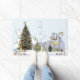 This magical illustration depicts a classic Whoville Christmas celebration centered around the annual Christmas Tree Contest! The scene is snowy and festive, featuring a massive, fully decorated Christmas tree next to the redeemed Grinch (wearing a scarf) and his loyal dog, Max. Smaller, creatively decorated trees line the way to the whimsical Judging Stand, where the Whos gather to decide the winner. This detailed graphic perfectly captures the communal joy and spirit of friendly holiday competition!