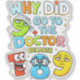 Funny “Why Did 9 Go to the Doctor?” maths joke sticker designed to make children smile while learning numbers.
