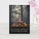 Magische, zauberhafte und mystische Geburtstagskarte, für diese magische! Eine heidnische oder wikkische Geburtstagskarte mit einem bezaubernden Wald mit wunderschönen Kerzen mit Flammen gegen einen Nebel. Eine hübsche magische Naturszene.