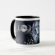 Schöne Hexe mit einem Kristallball mischt in die Nacht.