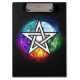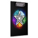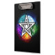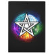 Artistically drawn, luminous pentagram with five magical elements, water, earth, fire, astral, air on black background. Wiccan pentagram. Wicca