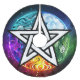 Artistically drawn, luminous pentagram with five magical elements, water, earth, fire, astral, air on black background. Wiccan pentagram. Wicca
