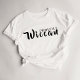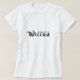 Weißer T - Shirt mit schwarzem weißem Text, Schrift, Slogan.
