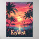 Erleben Sie den Zauber von Key West, während die Sonne unter den Horizont abtaucht und ein warmes Licht über das tropische Paradies wirft. Unsere Reise- und Illustration erfasst die ruhige Schönheit eines Sonnenuntergangs mit lila Wolken, die den Himmel malen. Tauchen Sie ein in die entspannte Atmosphäre, in der sich jeder Abend in einer farbenprächtigen Symphonie entfaltet und Sie zum Entspannen einlädt.