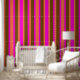 Wallpaper with vertical stripes. Light orange, dark pink and golden brown colors in stripes that vary in width.
