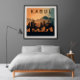 Die Abbildung zeigt eine Vision von Kabul City in der Zukunft, nach einer langen und verheerenden Phase des Krieges und Konflikts. Das minimalistische Design ist mit futuristischen Elementen vermischt und verleiht dem Bild ein Gefühl von Möglichkeit und Hoffnung für die Zukunft. Die Skyline wird mit einer beeindruckenden Silhouette von Gebäude gezeichnet, von denen einige anscheinend wieder aufgebaut wurden, stehend groß und stolz inmitten einer postapokalyptischen Landschaft. Die Berge in der Ferne verstärken das Gefühl der Isolation und der Abgeschiedenheit von der Außenwelt, aber sie deuten auch auf eine neue Ära der Autarkie und Widerstandsfähigkeit für die Menschen in Kabul hin. Der Ton der Illustration ist von Entschlossenheit und Optimismus geprägt, denn die Stadt wird als Hoffnungszeichen für die Zukunft präsentiert.