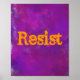 Das Wort widersteht in fett gedruckten Schriftzeichen auf einem stürmisch lila Aquarellhintergrund.