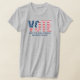 Lass dir deine Stimme zu hören! Das Shirt für die hellgraue Wahl von Inspirationsfrauen zeigt ein "Vote"-Textdesign mit einem amerikanischen Fahnenmuster von US Flagge in Rot, Weiß und Blau. Die marineblau "Wie die ganze Welt von dir abhängt" benutzerdefinierte Text kann personalisiert werden.