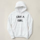 Hoodie mit "LIKE A GIRL" oben geschrieben.
