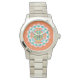 Ein weiches, pastellfarbenes Mandala-Muster in aquamariner und korallenfarbener Form. Künstler: Harriet Sussman
