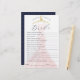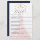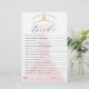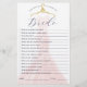 Spaß & Stilvoll wie gut kennen Sie die Braut-Duschspielkarte? Spielspass beim Brautparty Party. Elegantes, rosafarbenes Kleid mit goldfarbenem Vintager Kleiderbügel im Hintergrund. Originelle Kunstwerke und Design von Moodthology Papery.