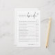 Break das Eis mit diesem Spiel "How Well Do You Know the Bride?", bei dem Gäste aufgefordert werden, Fragen zur Braut zu beantworten und ihre Zahl korrekt anzugeben. Verwenden Sie das Design-Tool, um die Fragen auf Wunsch anzupassen, oder ändern Sie die Farben, um das Brautparty-Design zu übernehmen.