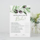 Feiern Sie Liebe und Freundschaft mit dem eleganten "Wie gut kennen Sie die Braut?" Olive Branch Edition Brautparty-Spiel. Dieses Spiel mit weicher Vegetation und zarten Illustrationen aus dem Olivenzweig bringt Ihnen eine Touch von Naturschönheiten und Raffinesse zu Ihrem Event. Freuen Sie sich auf interessante und sinnvolle Fragen über die Braut, das Erschaffen von Lachen, süße Erinnerungen und eine tiefere Verbindung zu ihrer Reise. Dieses inspirierte, minimalistische oder rustikal-schicke Brautparty vereint Stil und Stimmung zu einer unvergesslichen Aktivität.