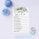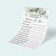 Grüne Eukalyptus Wie gut kennen Sie die Mama zu sein Baby Dusche. Für weitere Änderungen (Schriftart, Stil des Schriftartes, Entfernen oder Verschieben von Elementen), klicken Sie auf Personalisieren, scrollen nach unten und klicken auf den Link "Bearbeiten mit dem Entwurfswerkzeug". ** Karo der Kollektion für alle passenden Designs ** - HOW TO PLAY: Gäste antworten Fragen über die Mutter zu sein, nach dem Ausfüllen aller Antworten, die Mutter-zu-werden beantwortet alle Fragen und Gäste werden auf den rechten Feldern Karo, die sie richtig erraten, und schreiben Sie die Summe der richtigen Antworten am Ende. Die Person mit den korrektesten Antworten gewinnt.