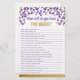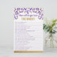 Wie gut kennst du die Braut? Spiel für Brautparty in lila und Gold. Ein kleines Trivia über die neue Braut zu sein ist immer Spaß zu spielen und fordert Ihre Gäste heraus.