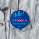 Wie kann ich Ihnen helfen Blue Friendly Business Name Schaltfläche. Ein einfaches und freundliches Namensschild auf einem lustigen bunten Button. Eine tolle Art, Ihre Kunden mit einem fröhlichen und einladenden Geist zu bewundern!